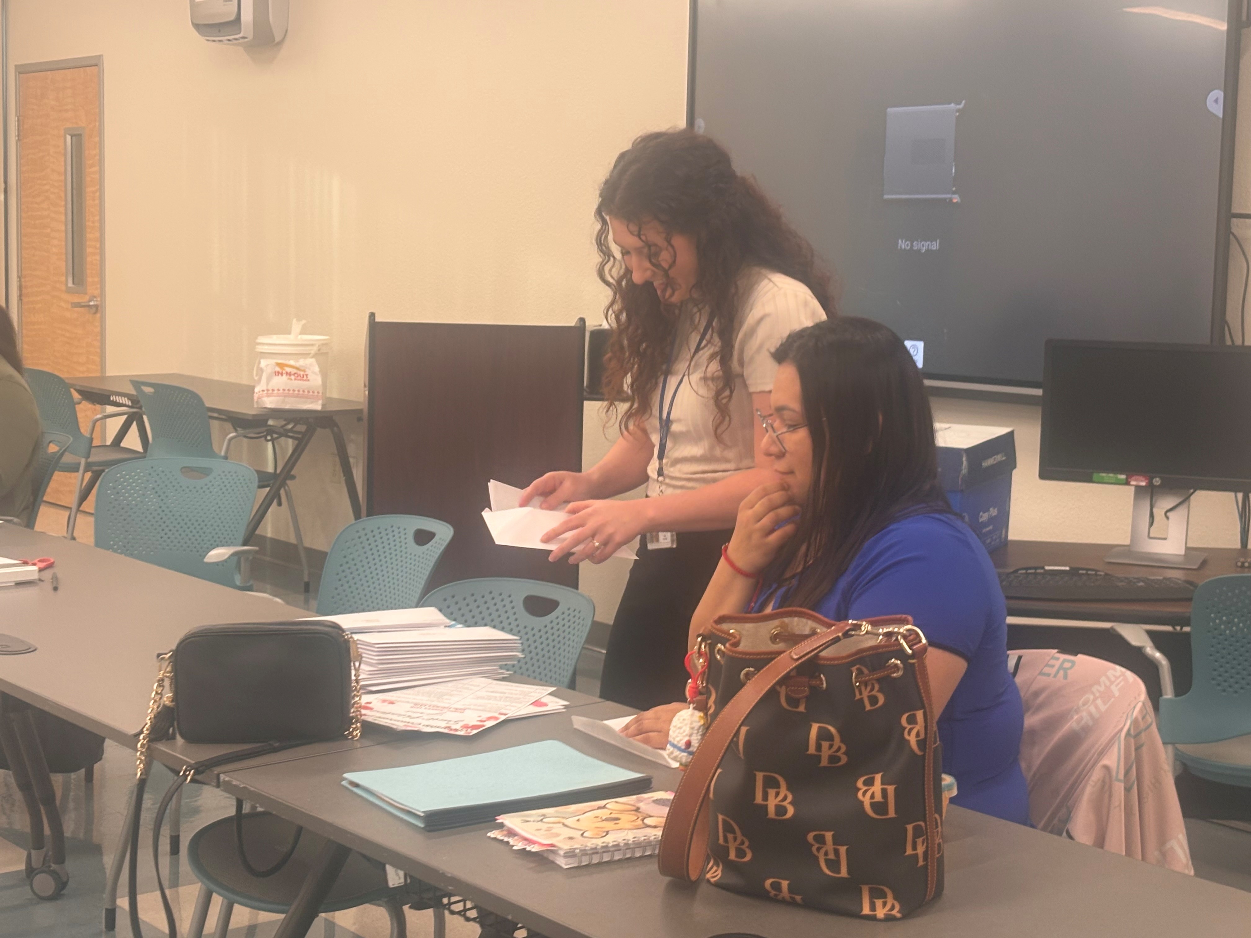 Selecting Valentine's Grams to sell to collect for scholarships.